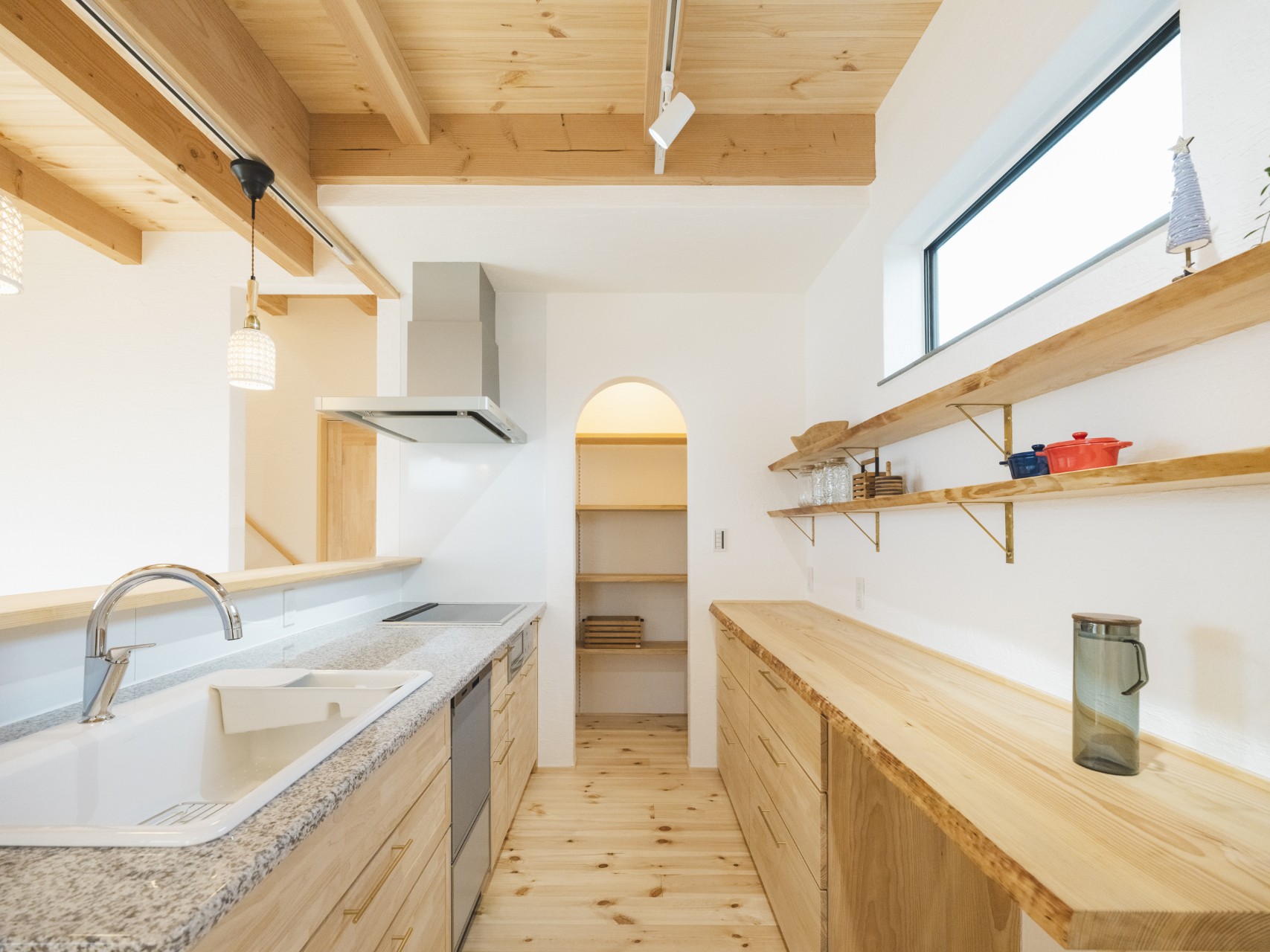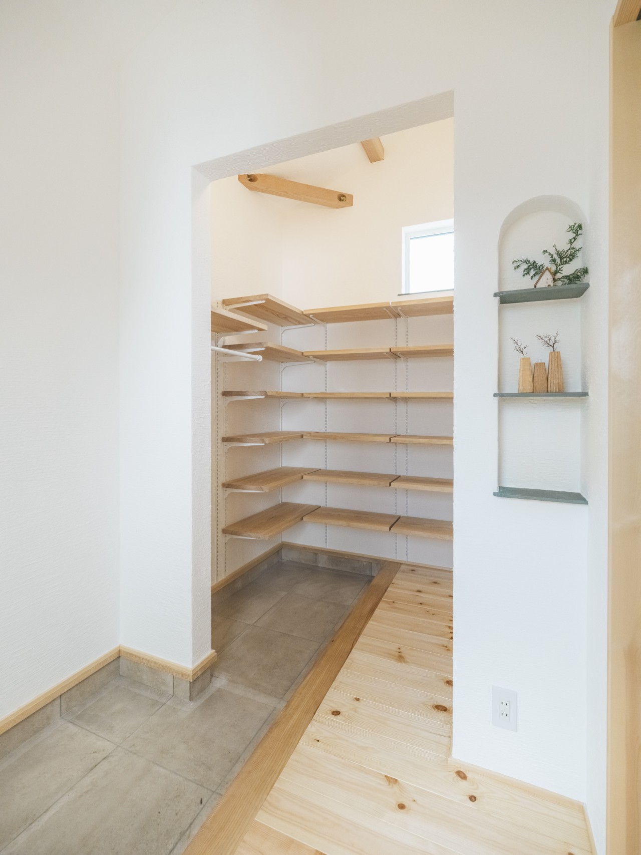 見せる飾り棚と、奥にはしっかり収納できるパントリー。