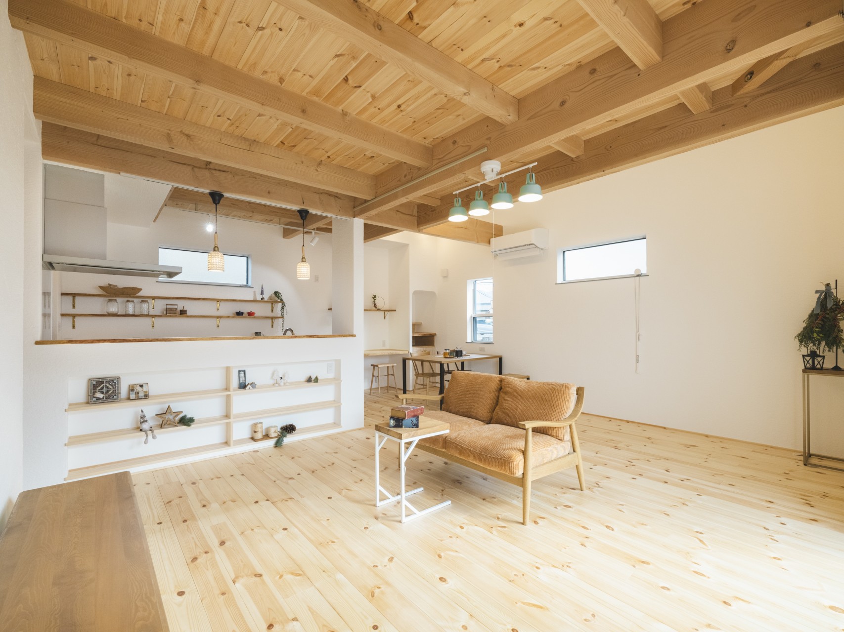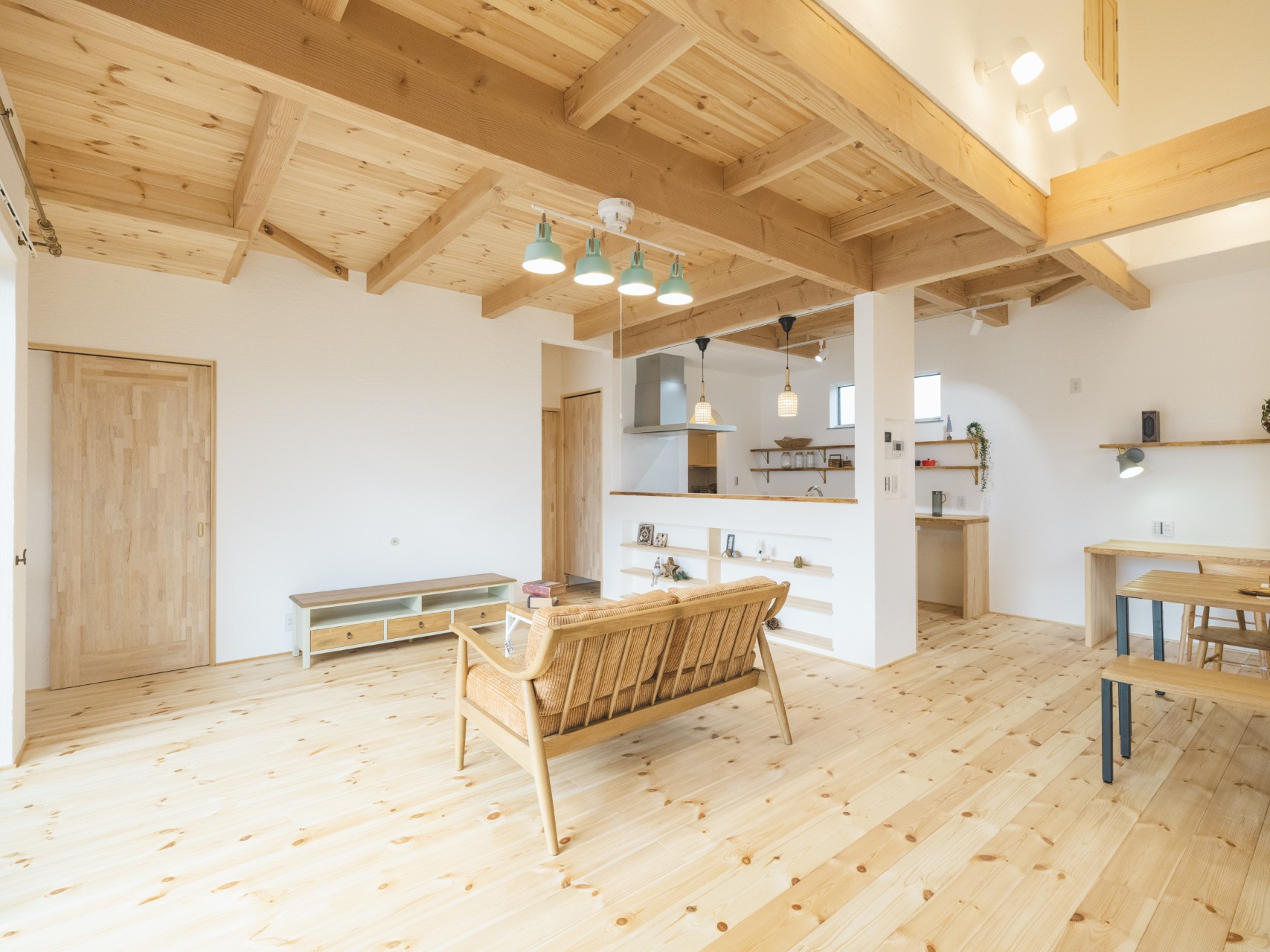 無垢材の天井が、室内にあたたかく落ち着いた雰囲気をつくります。