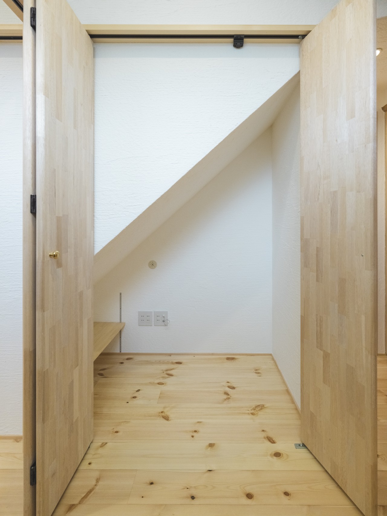 掃除用具置き場の下部はルンバの出入り口として活用し、暮らしやすさを高めています。 -